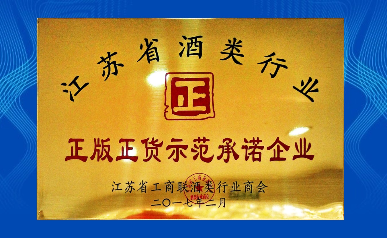 2017年貨江蘇省工商聯(lián)酒類行業(yè)商會頒發(fā)“正版正貨示范承諾企業(yè)”