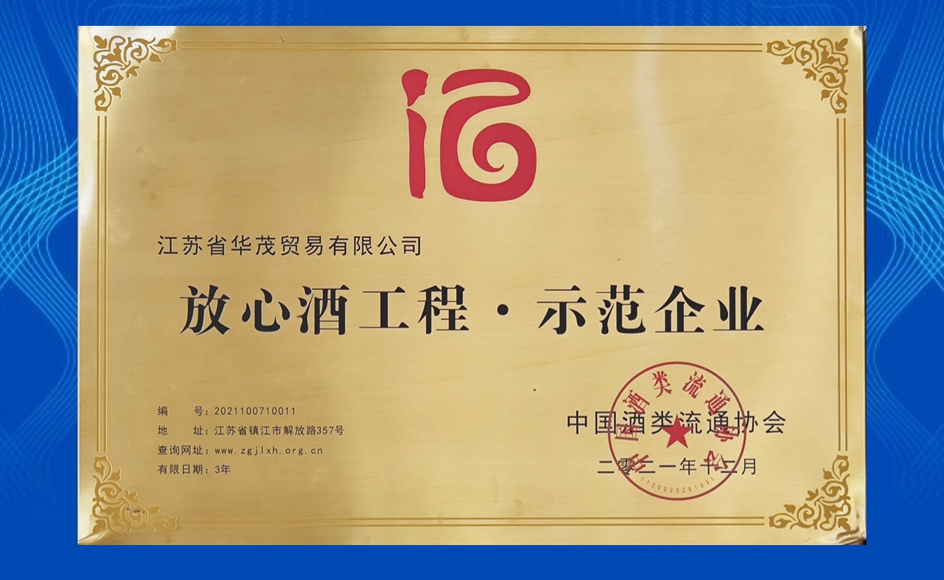 2021年獲中國酒類流通協(xié)會頒發(fā)“放心酒工程·示范企業(yè)”稱號